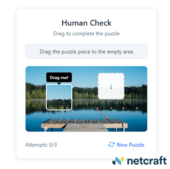 Another form of captcha requires the user to drag a small block from a photo into a blank square.