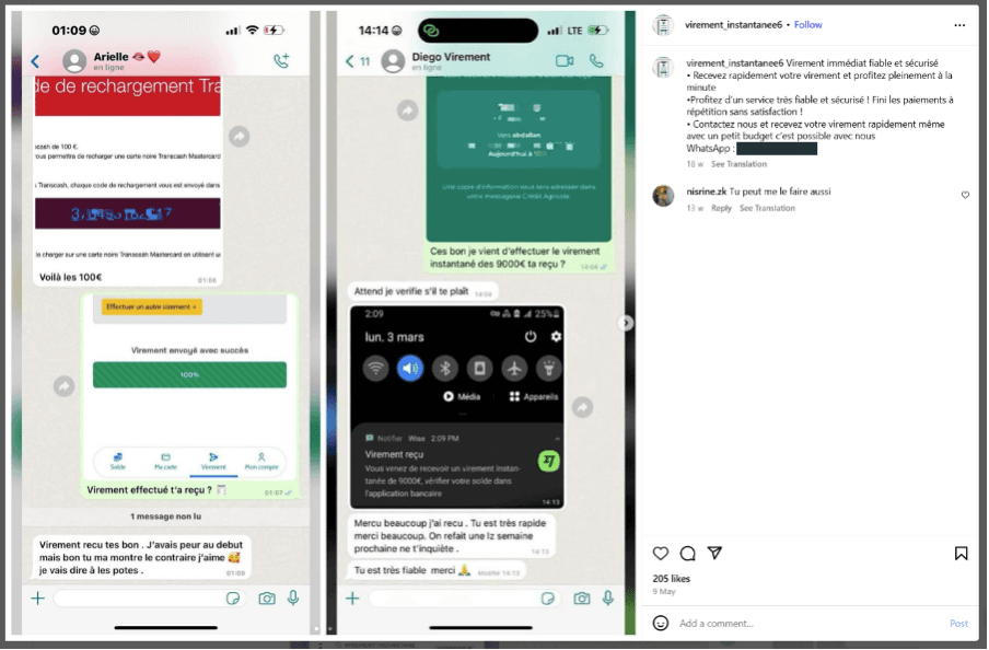 Figure 3. A mule recruitment profile on Instagram targeting victims with French bank accounts.