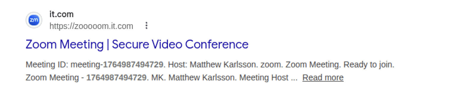 In late February 2026, Netcraft identified a campaign involving fake Google Meet and Zoom pages to lure users into fraudulent video calls that ultimately deliver remote-access software. Initial reporting identified uswebzoomus[.]com/zoom hosting this content. Netcraft analysis uncovered several additional domains hosting identical fake meeting pages.