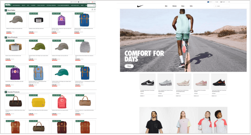 Claiming to offer highly discounted goods, fraudulent online stores (or fake shops) impersonate the websites of luxury brands and established retailers. These shops are often a front to capture payment details (and other sensitive information) that users submit at the checkout stage of the transaction. These details can then be used to create convincing phishing attacks (which we discuss later) or sold on to other cybercriminals. Any goods that do end up being delivered, are very likely to be counterfeit.