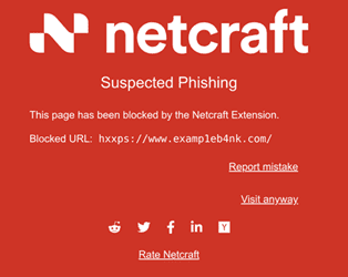 Once blocked, users of the Netcraft apps and extensions are immediately protected. Netcraft also licenses its feeds to browsers and antivirus companies along with internet infrastructure companies, protecting billions of internet users from potential exposure while Netcraft’s automated takedown services work to rapidly take the attack offline completely.